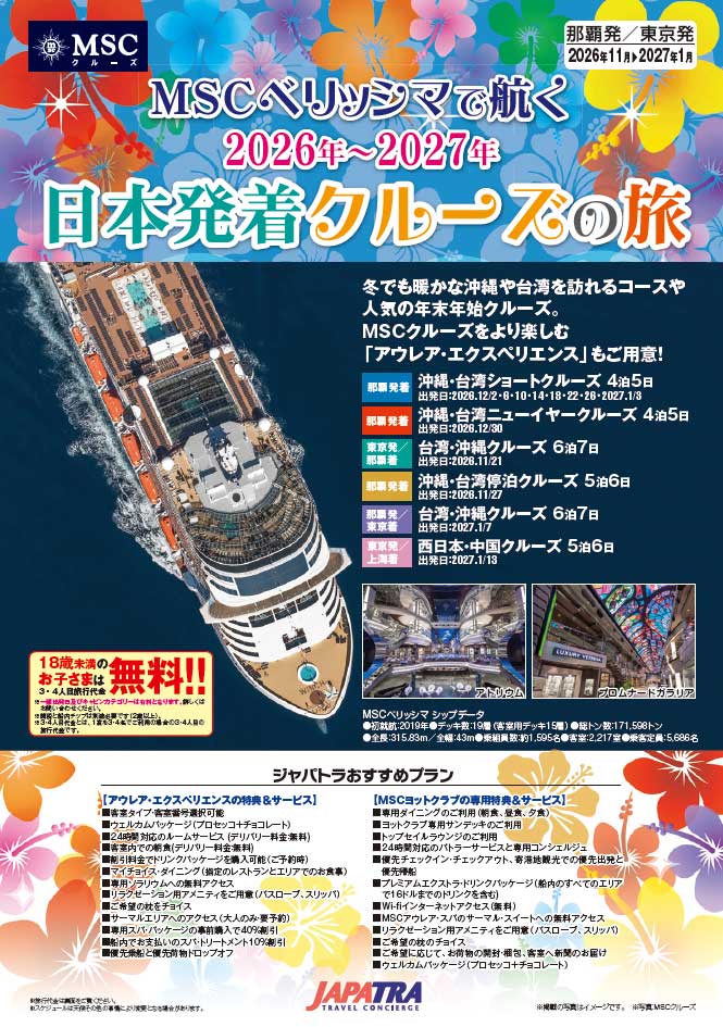 - 【MSCベリッシマ・添乗員付ツアー】2026年1月19日出発 弊社のクルーズマスター鶴川が添乗します!レアでありとても安心のツアーです。