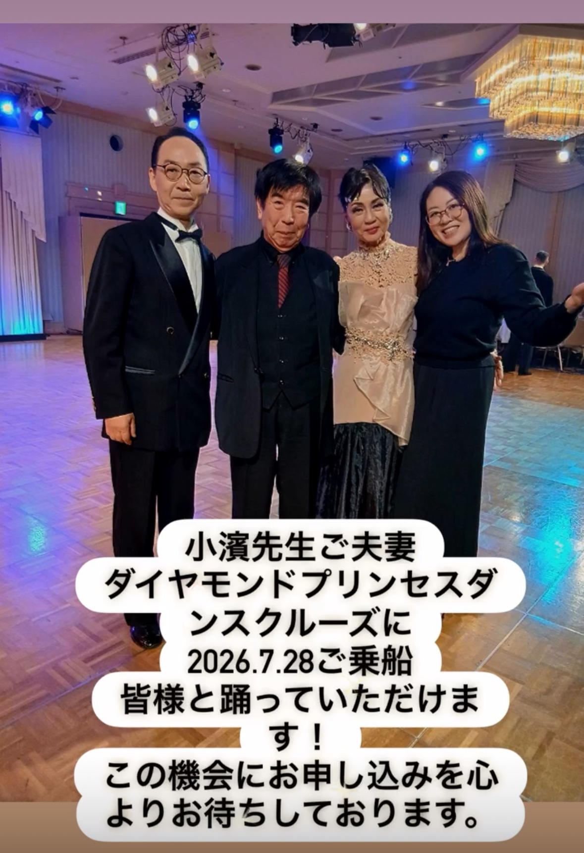 小濱先生(プロ)ご夫妻がご乗船!皆様と一緒に踊っていただけます。なかなか無い機会です、是非奮ってご応募ください!!