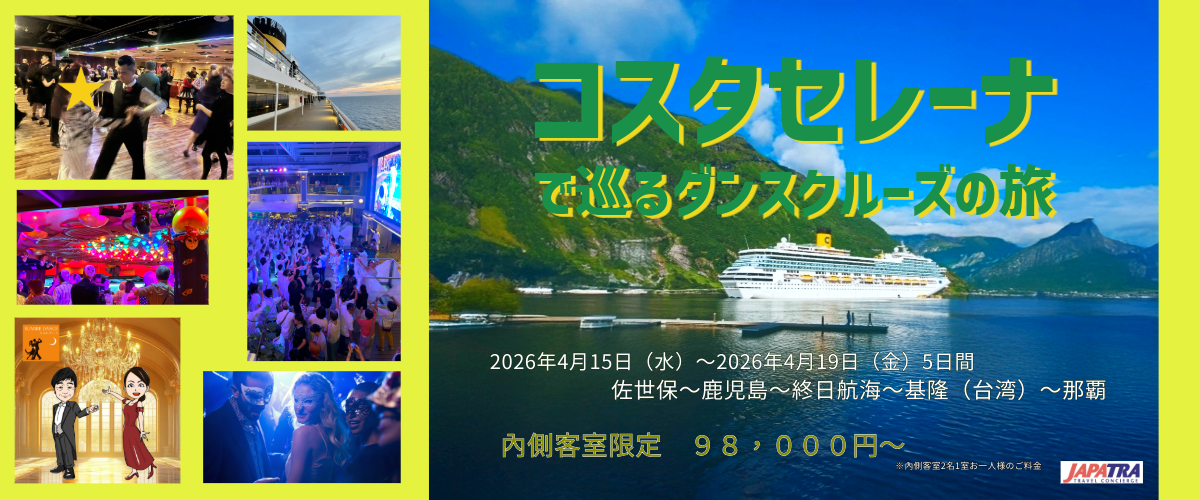 - 【社交ダンスクルーズ・コスタセレーナ】2026年4月15日発ダンスクルーズ★ 内側限定 緊急発表!!