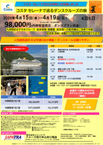 【社交ダンスクルーズ・コスタセレーナ】2026年4月15日発ダンスクルーズ★ 内側限定 緊急発表!!
