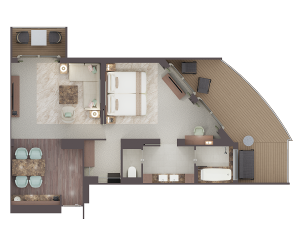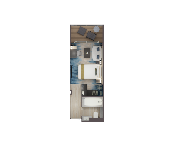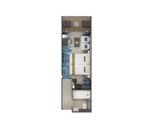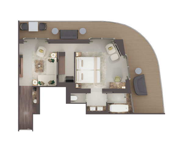 船尾の両サイドに位置し、広々としたバルコニーが特長の8室限定のコーナースイート。