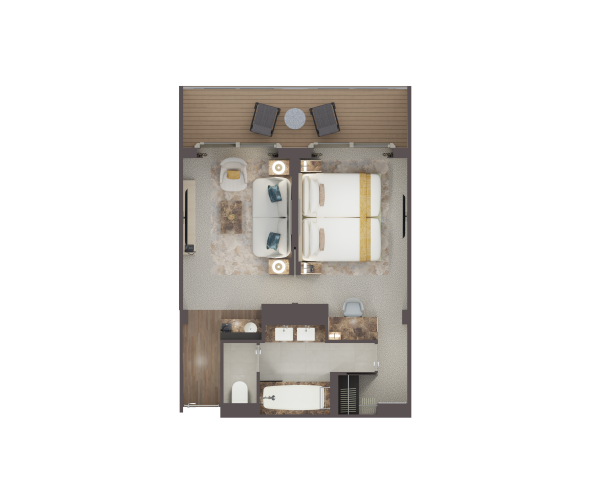ミニバー(シンク付き)/プライベートバルコニー/セミダブルベッド/バスタブ/洗面台/シャワー付きトイレ/ウォークインクローゼット/テレビ/冷蔵庫/電気ケトル/金庫/ドライヤー/バスアメニティ/スキンケア/風呂敷/タブレット端末