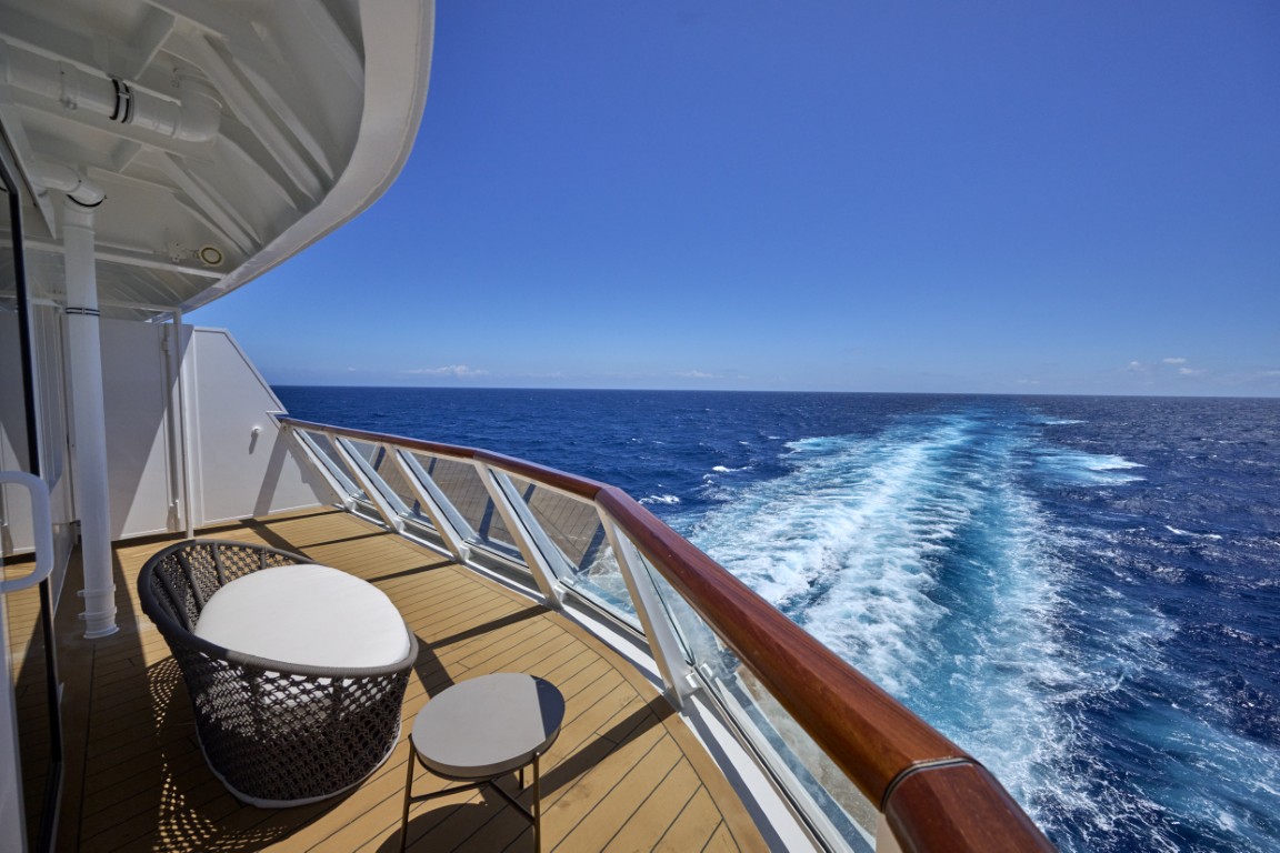 船尾方向にバルコニーを備えた8室限定のスイート。