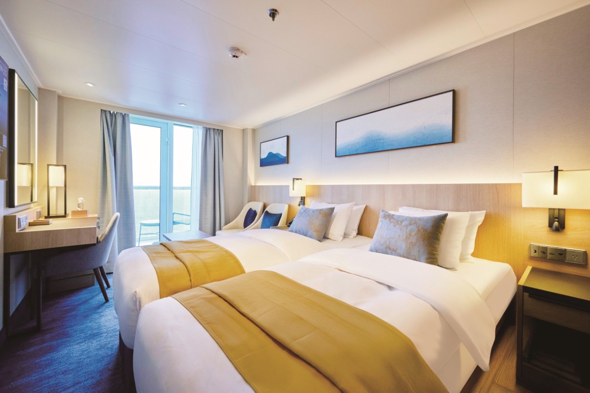 船 首の両サイドに位 置する、4室限定のコーナースイート。