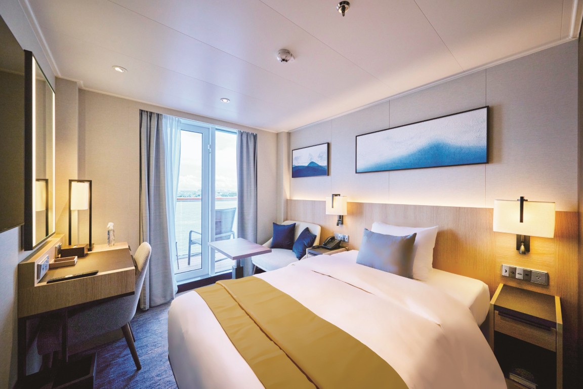 飛鳥Ⅲの客室は全室プライベートバルコニー付き。