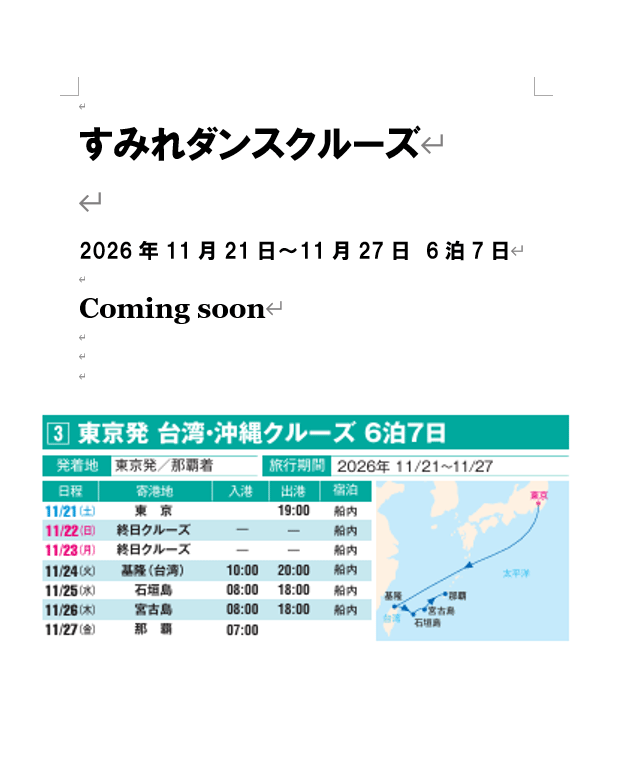 電話番号:03-6915-3645 メール:cruise@japatracruise.com FAX:03-6915-3652