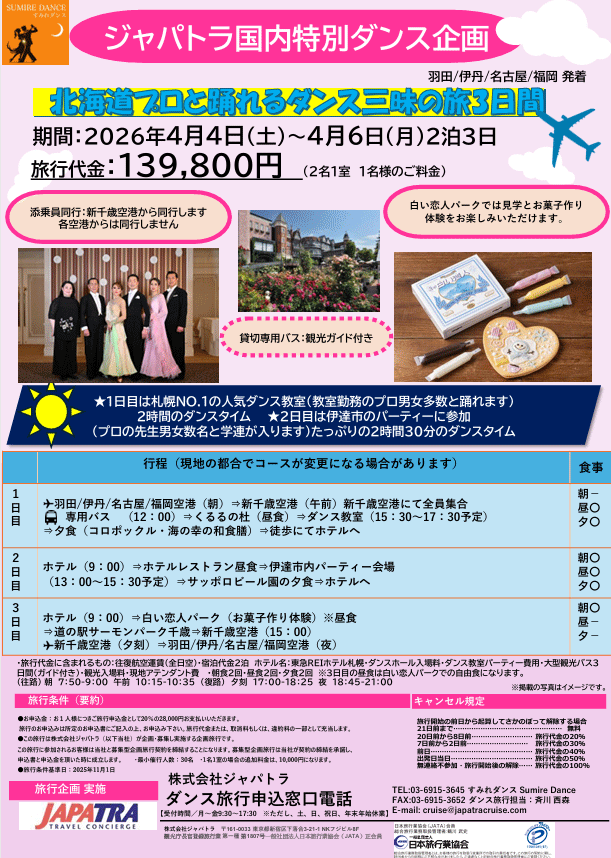 2026年出発 北海道プロと踊れるダンス三昧の旅