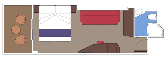専用エリアで過ごす特別なクルーズをお楽しみいただけるヨットクラブの海側バルコニーの客室です。