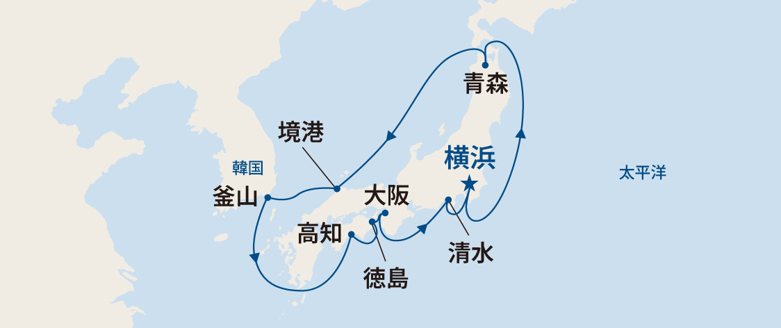 ※天候などの理由により、寄港地、日時、ルート等は変更になる場合があります。