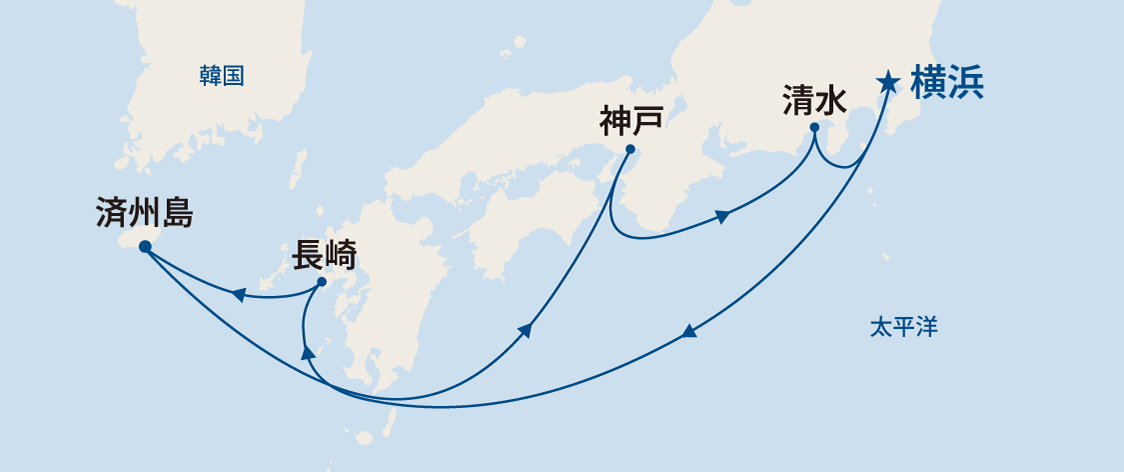 ※天候などの理由により、寄港地、日時、ルート等は変更になる場合があります。