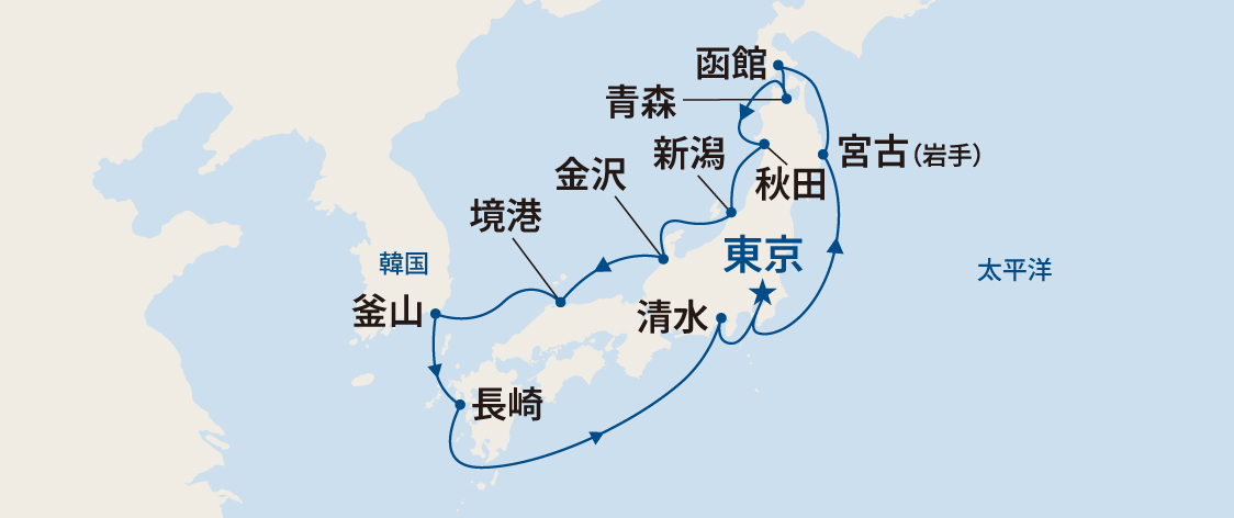 ※天候などの理由により、寄港地、日時、ルート等は変更になる場合があります。