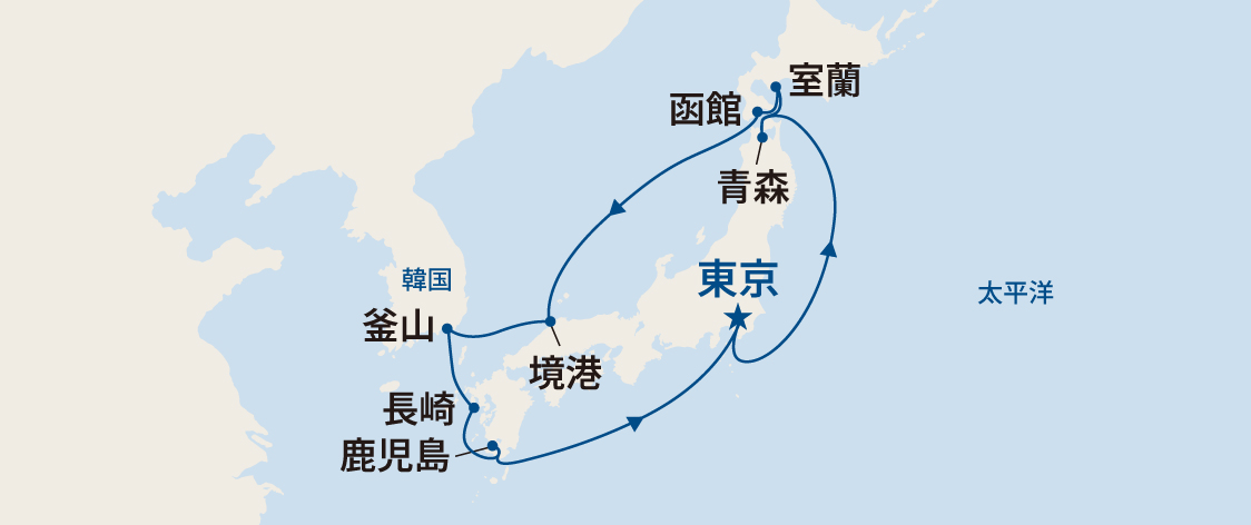 ※天候などの理由により、寄港地、日時、ルート等は変更になる場合があります。