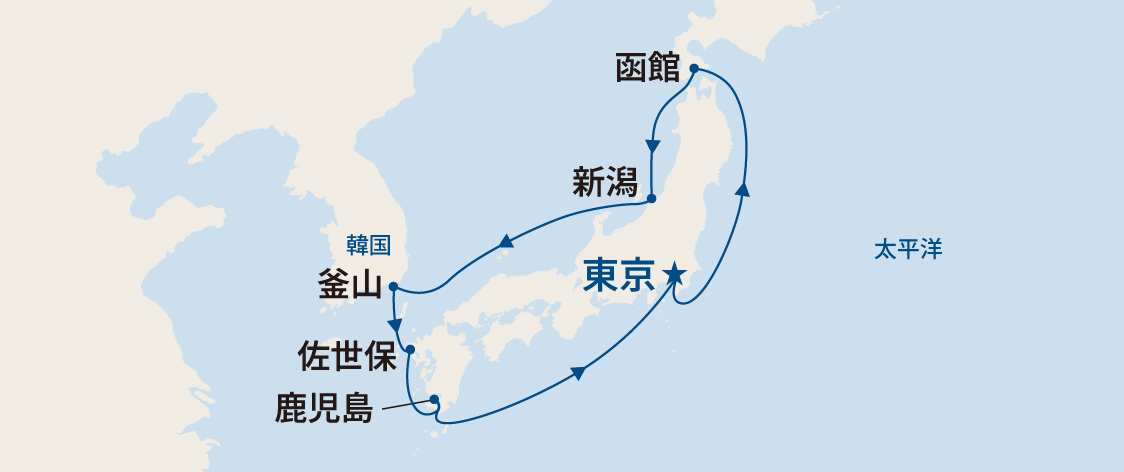 ※天候などの理由により、寄港地、日時、ルート等は変更になる場合があります。