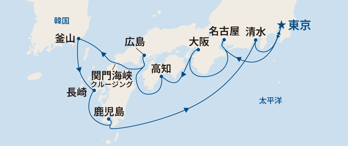 ※天候などの理由により、寄港地、日時、ルート等は変更になる場合があります。