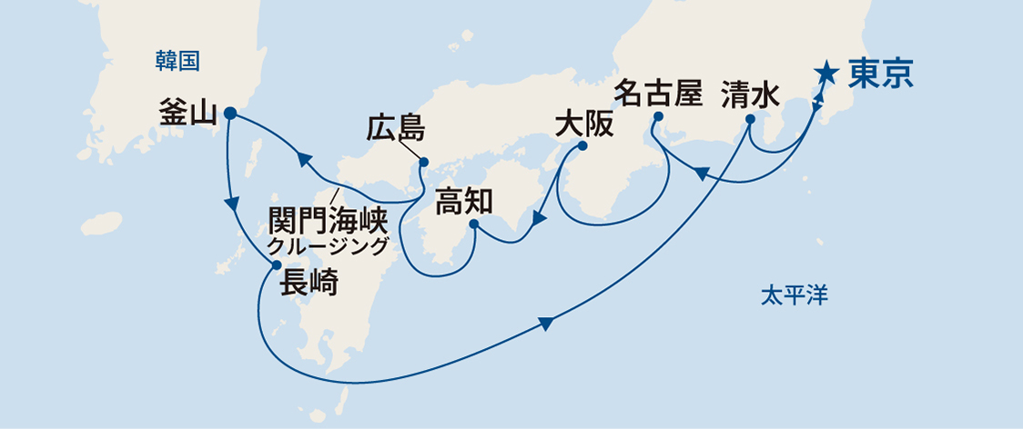※天候などの理由により、寄港地、日時、ルート等は変更になる場合があります。